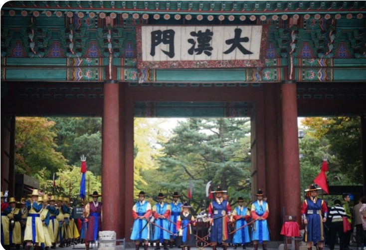 덕수궁 대한문 앞에서 선보이는 왕궁수문장교대의식은 영국 왕실의 근위병교대의식과 같은 한국 전통의 궁중문화 재현 행사로서, 왕실문화를 직접 체험하기 어려운 요즈음 진귀한 구경거리를 제공하고 있숩니다.