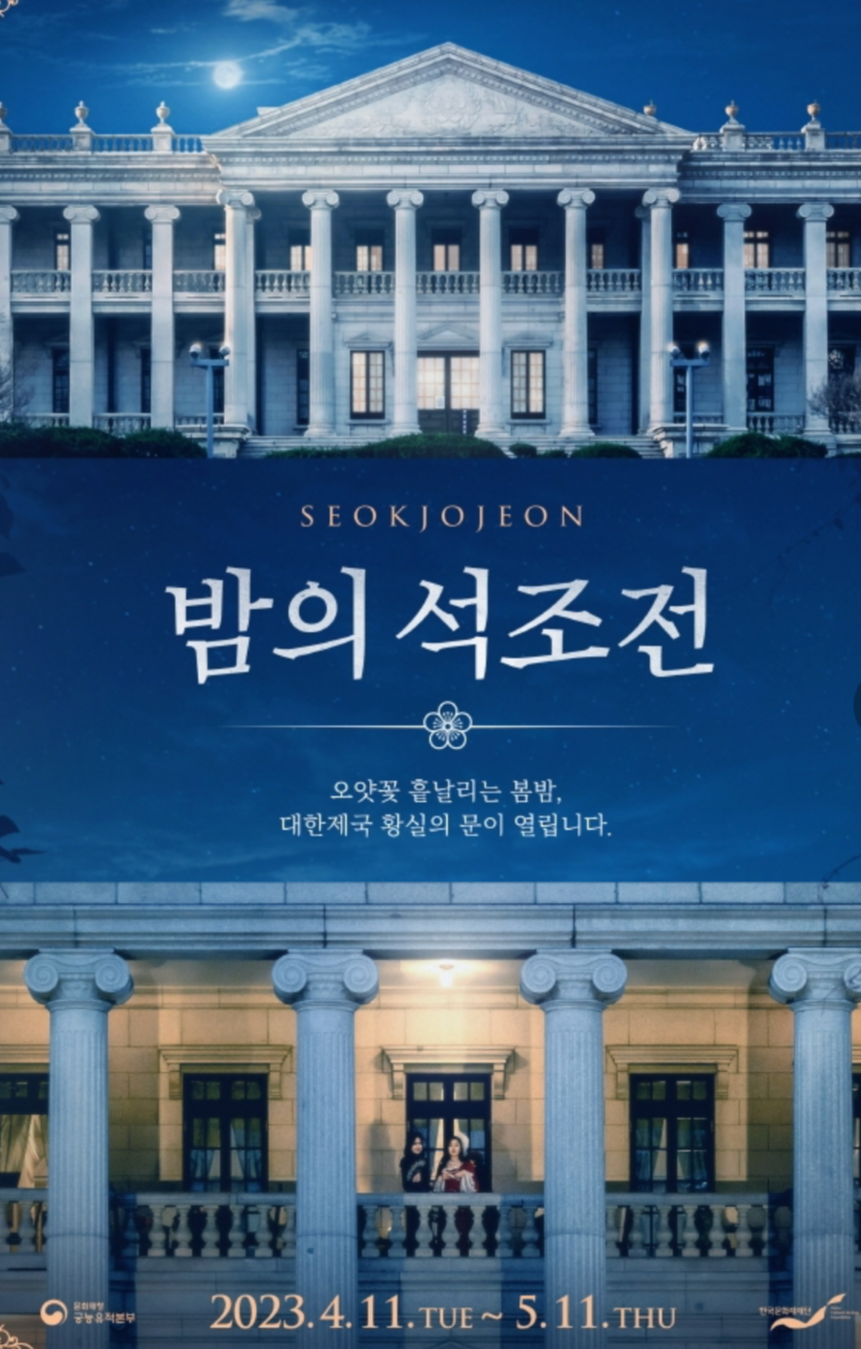 <밤의 석조전>은 전문 해설사와 함께하는 '석조전 야간 탐방'과 클래식 연주를 들으며 고종이 사랑했던 가배차(커피)와 디저트를즐기는 '테라스 카페 체험', 고종 황제의 이야기를 담은 '고종-대한의 꿈' 뮤지컬 공연 관람으로 구성되어 있는 덕수궁 야간 관람 프로그램입니다.