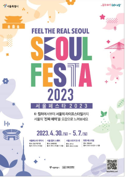 꽃 피는 새봄 서울 전역이 K-팝 공연부터 음식, 쇼핑, 야경 등을 즐길 수 있는 거대한 축제의 장으로 변신한다.4월 30일부터 5월7일까지 총 8일간 광화문 광장 및 잠실종합운동장 등 서울 전역에서 '서울페스타 2023'가 개최됩니다.